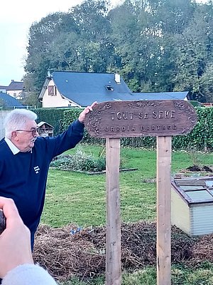 Ce vendredi 31 octobre, les habitants du village étaient conviés à participer à l'inauguration du panneau du Jardin Partagé "Tout se sème" .