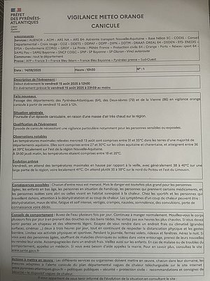 Vous trouverez en photos les deux derniers bulletins de vigilance émanant de la Préfecture, vous pouvez les consulter. Veuillez nous...
