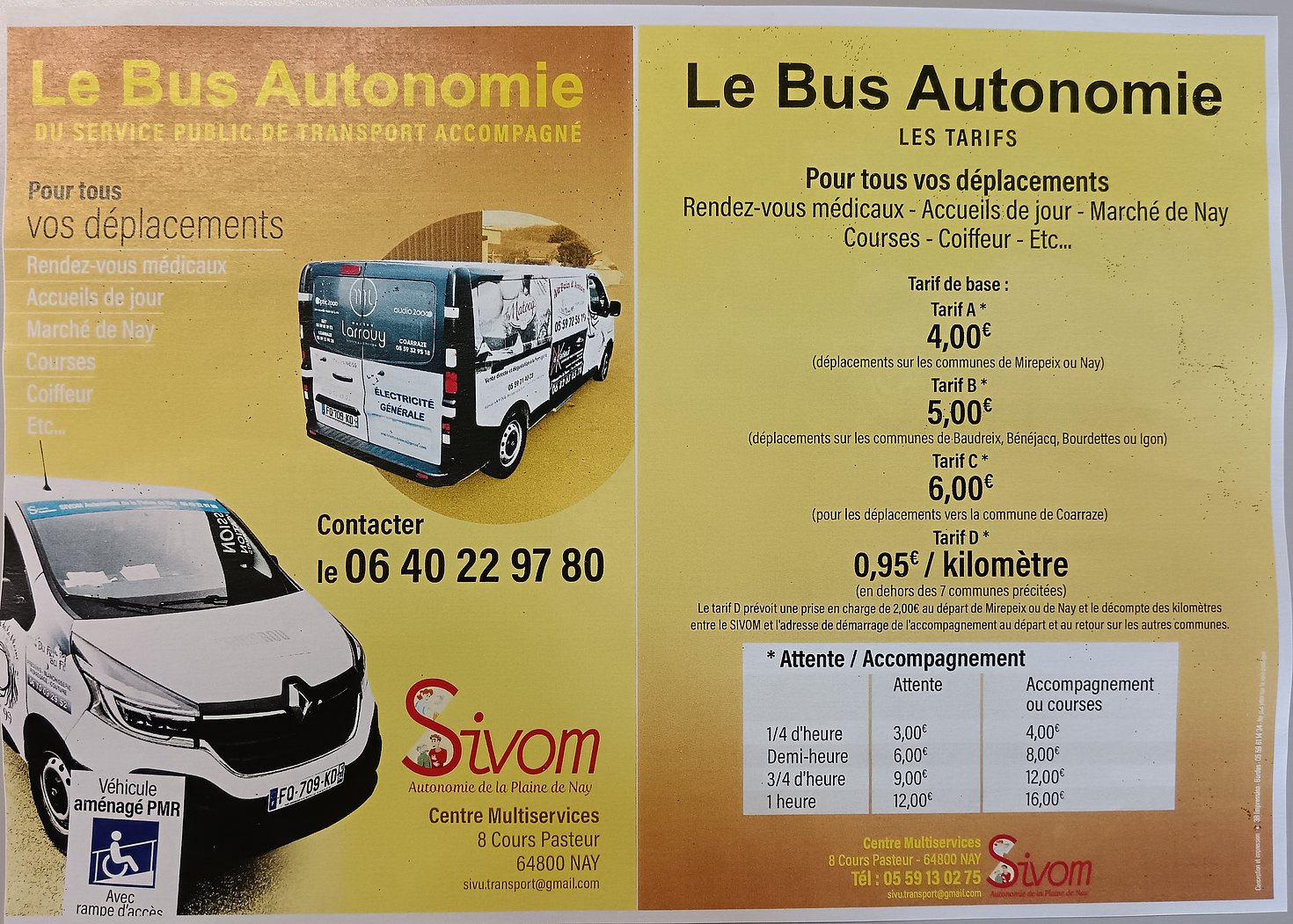 Possibilité de prendre contact avec le SIVOM à Nay ou avec le référent de chaque mairie.