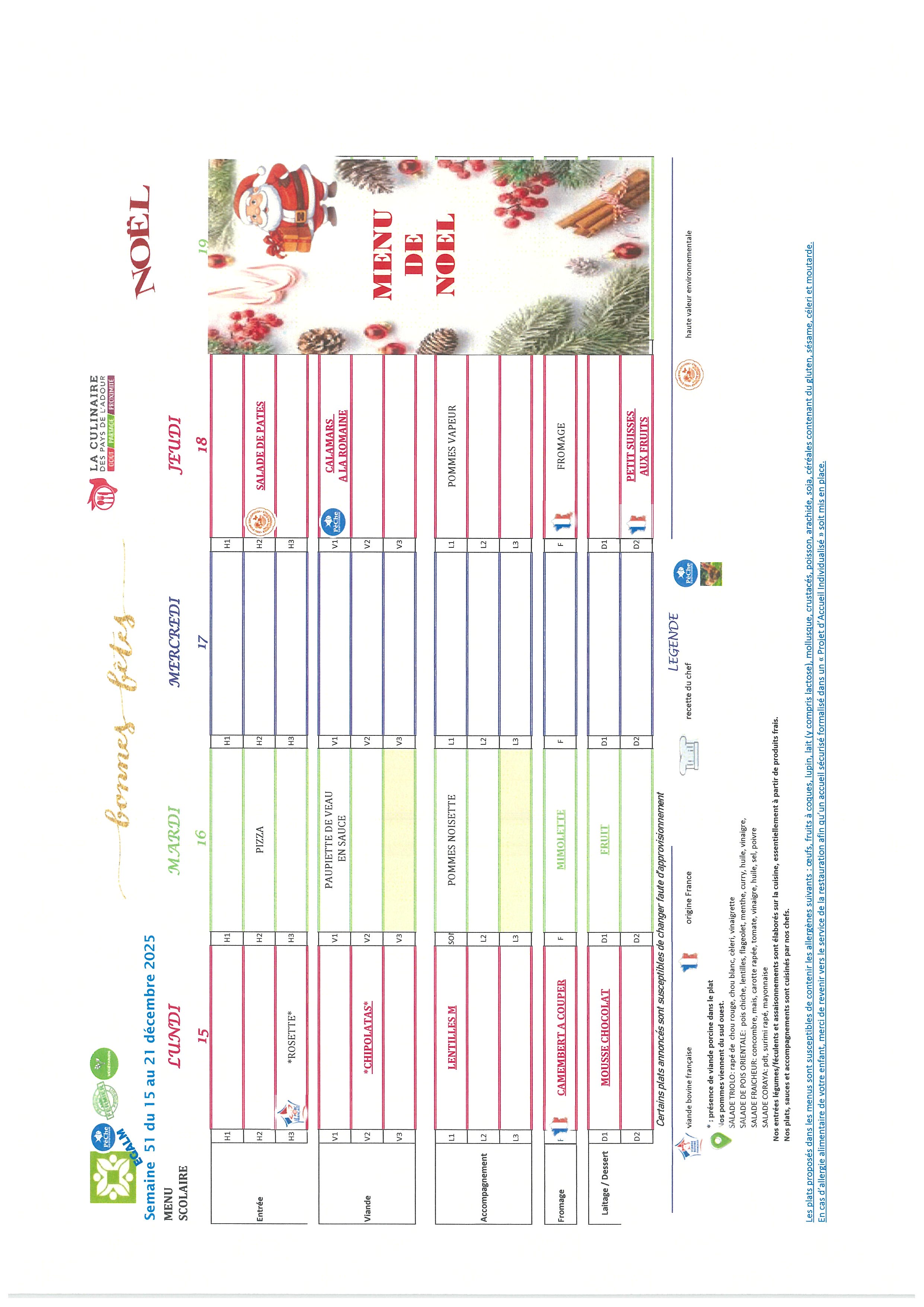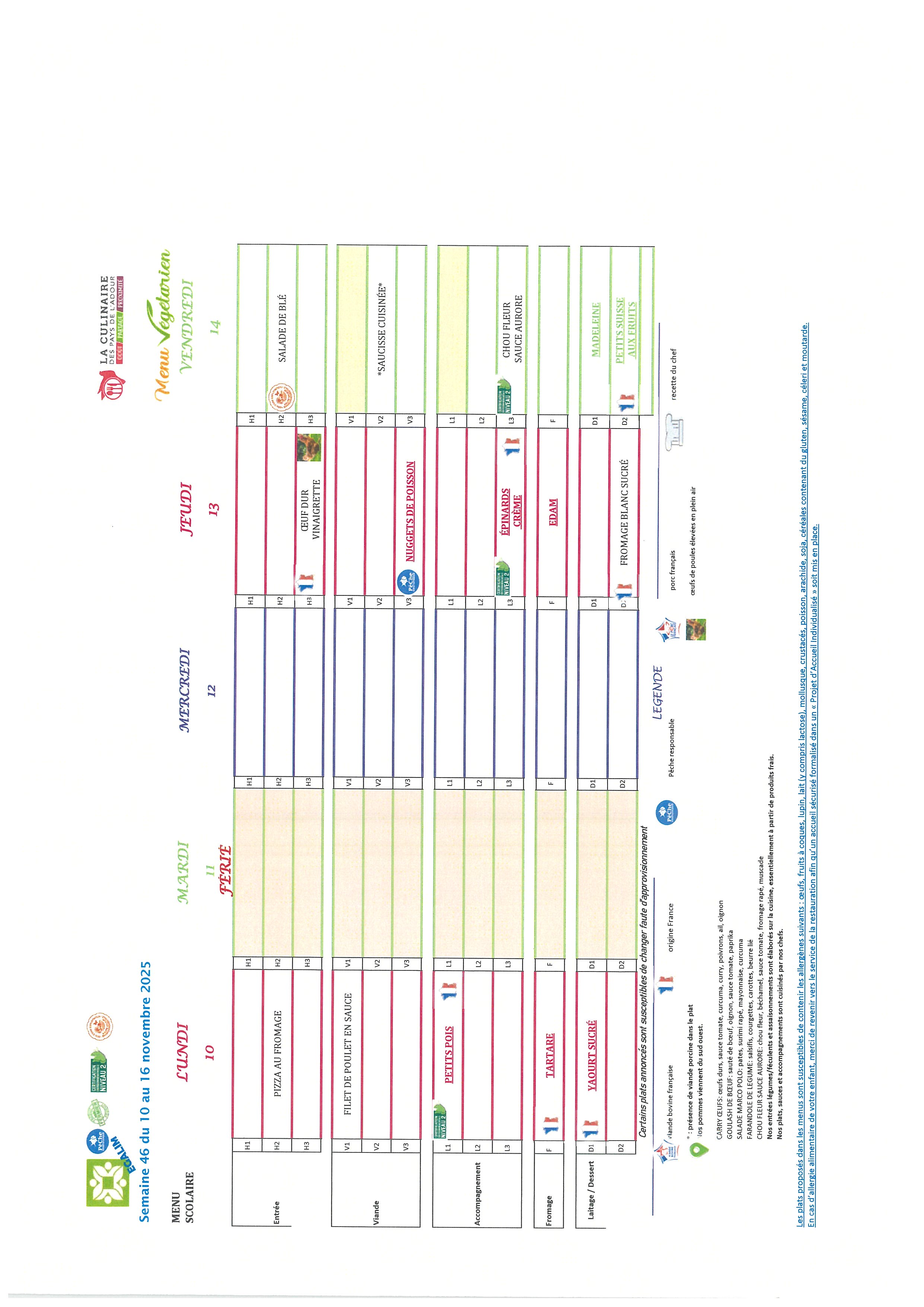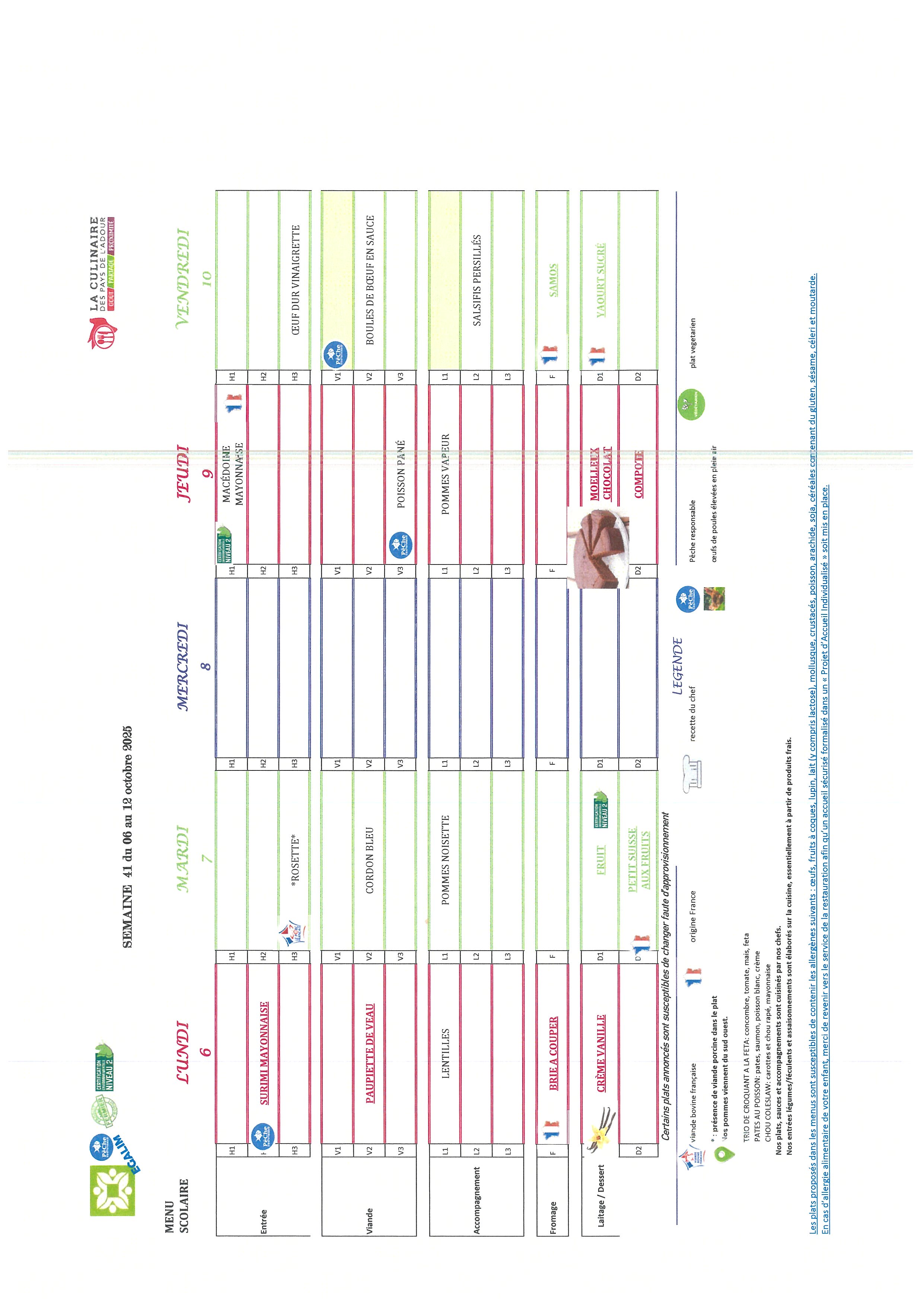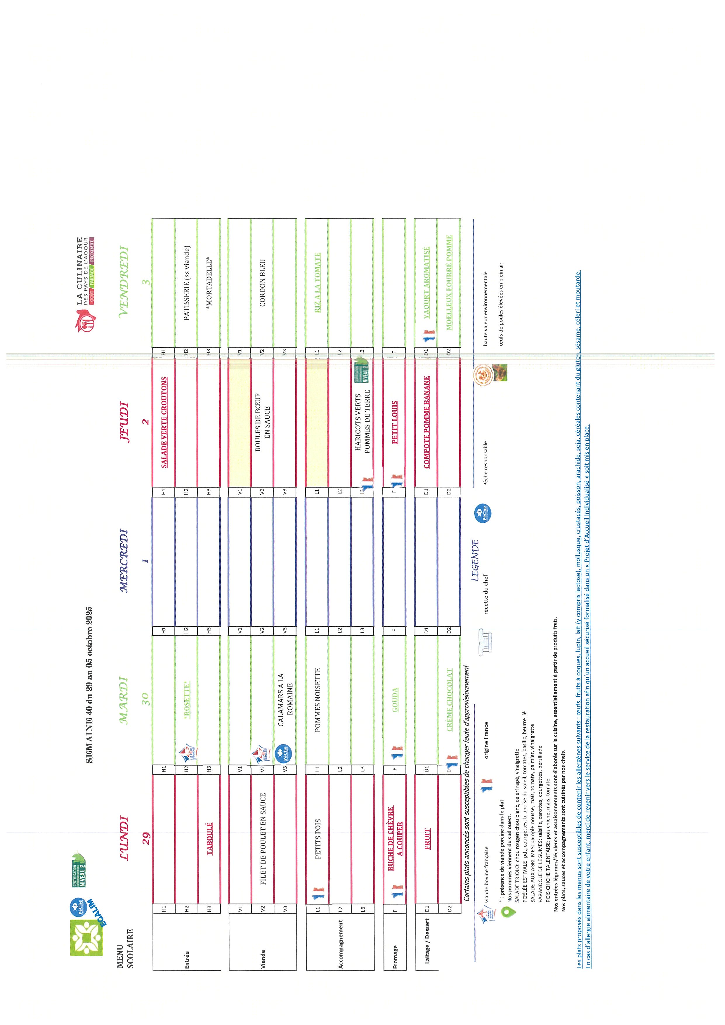 Les repas préparés en liaison froide, sont acheminés dans des camions frigorifiques chaque matin par notre prestataire « La culinaire » situé dans les Landes.