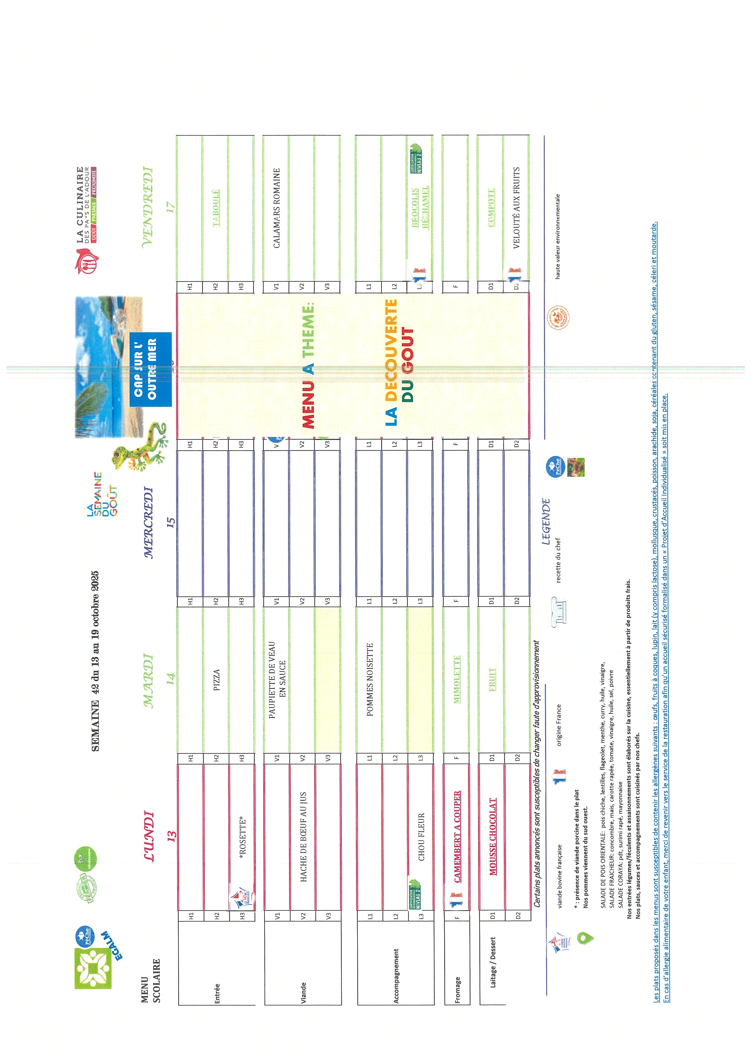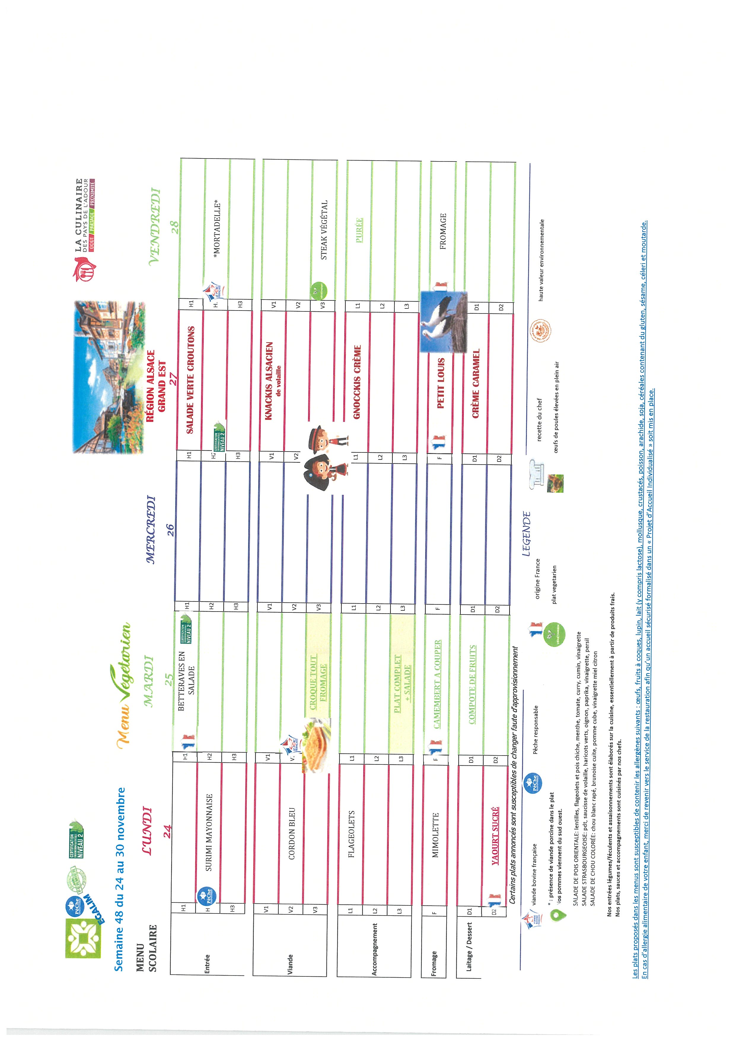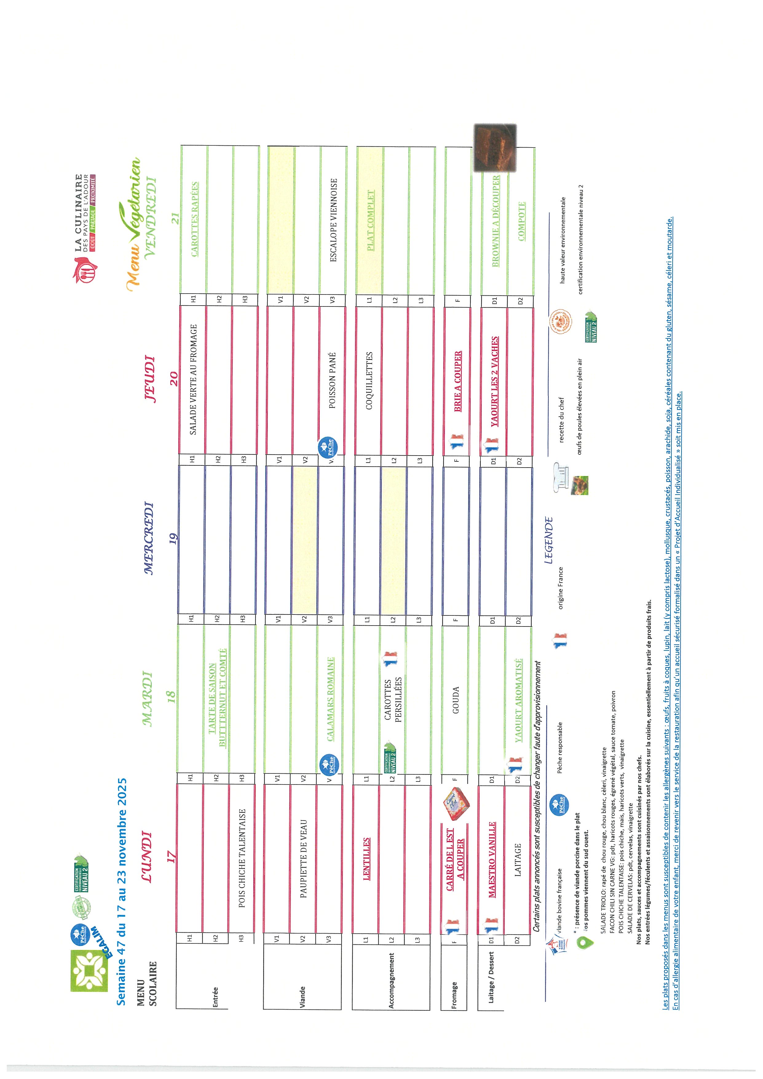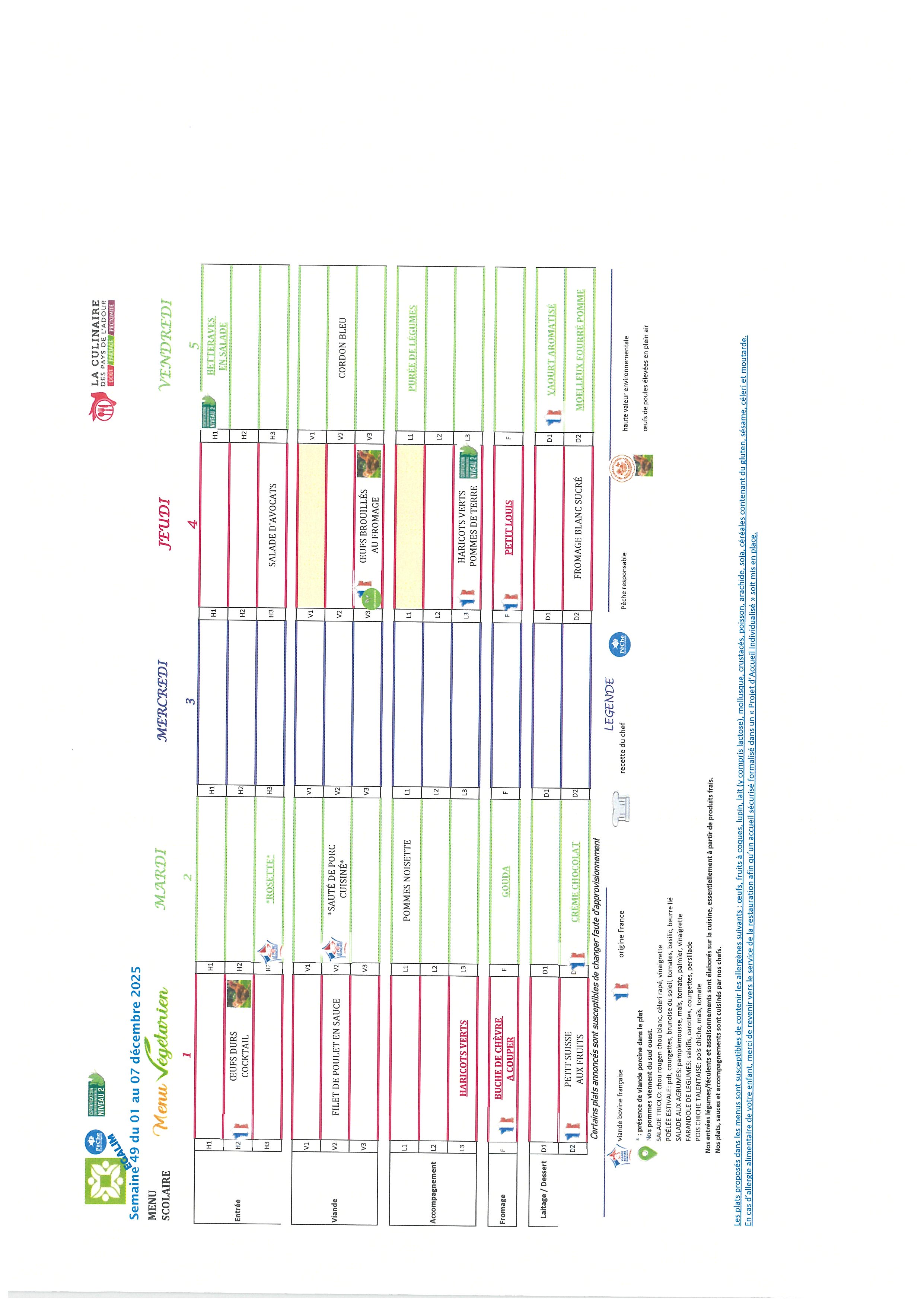 Les repas préparés en liaison froide, sont acheminés dans des camions frigorifiques chaque matin par notre prestataire « La culinaire » situé dans les Landes.