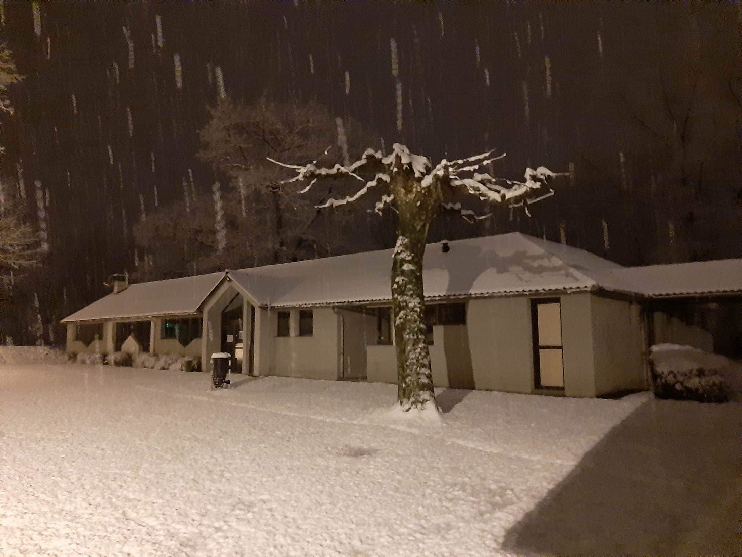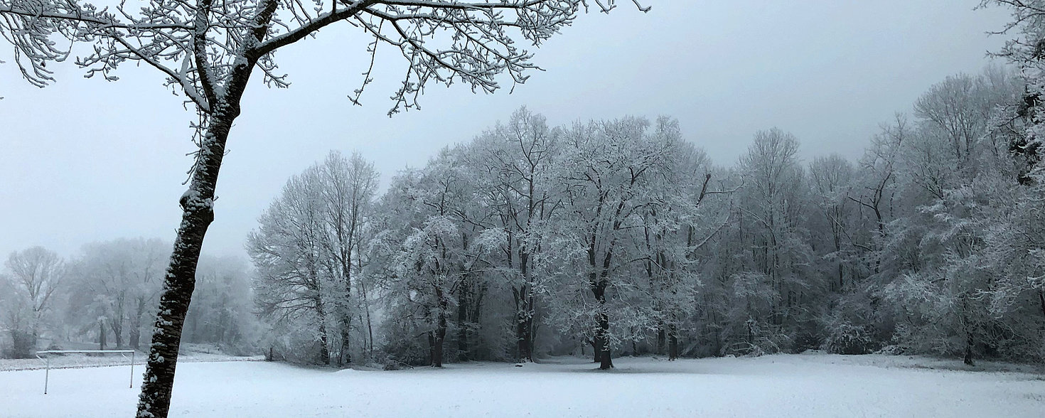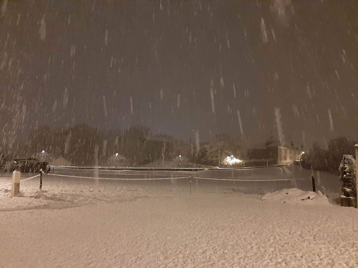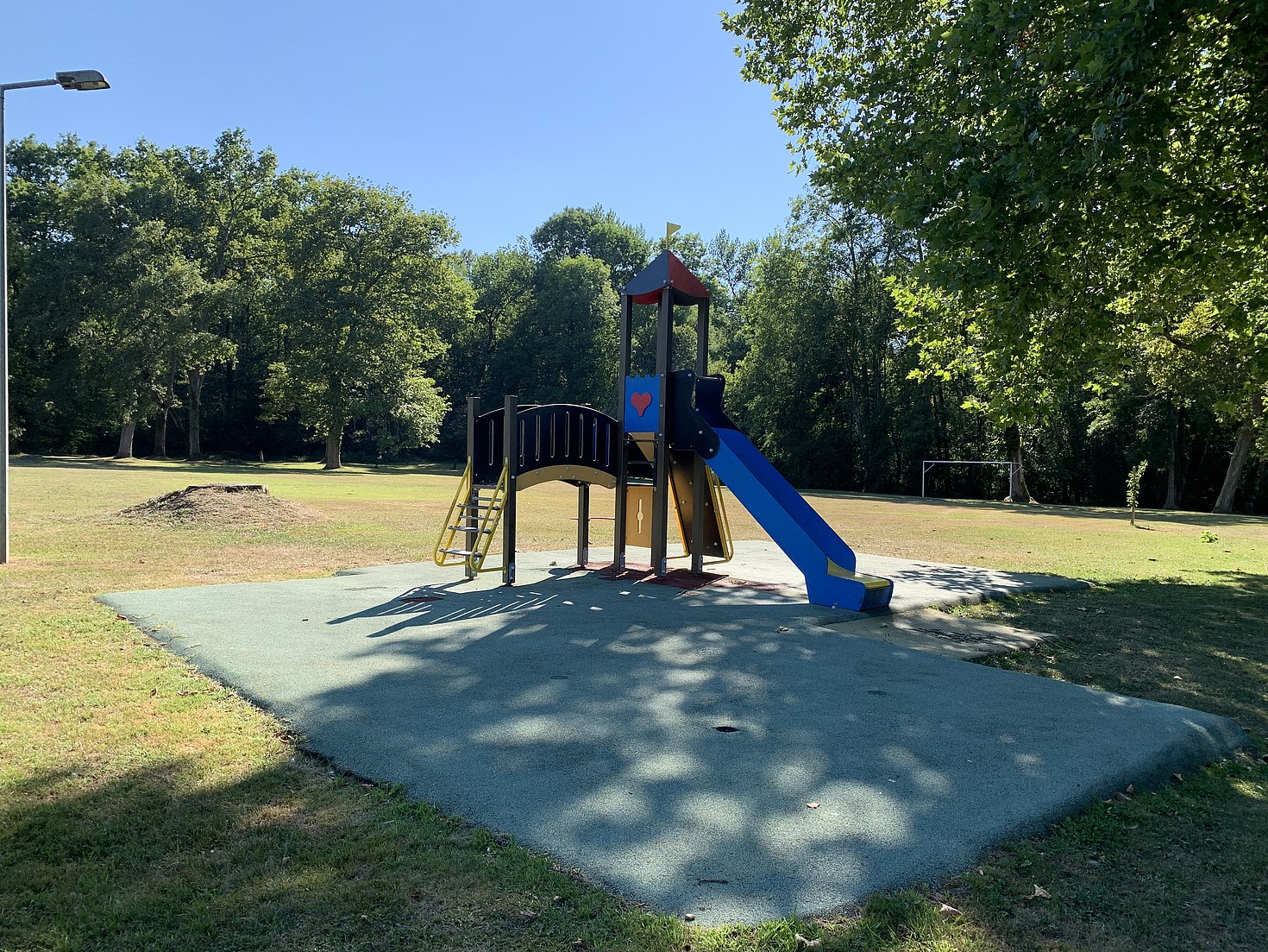 Prairie, le court de tennis et la table de ping pong à l'arrière de la salle des fêtes