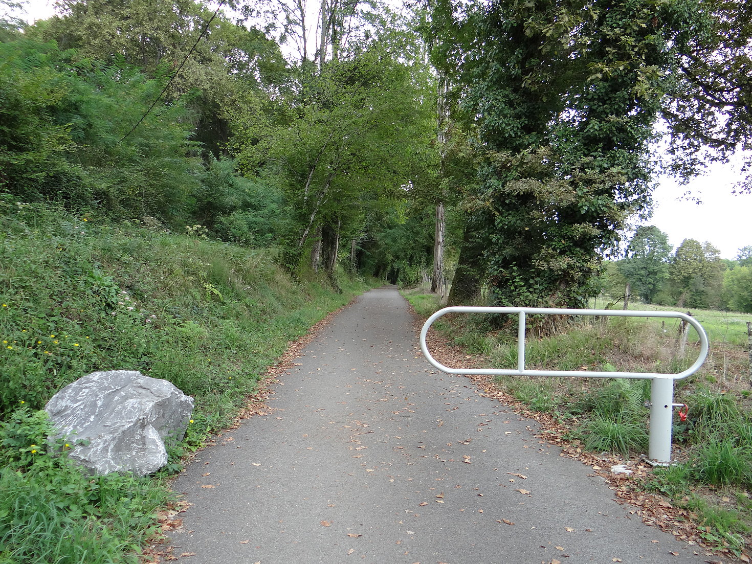 Panneau d'information de la maison du moulin du martinet sur le tracé de la voie verte