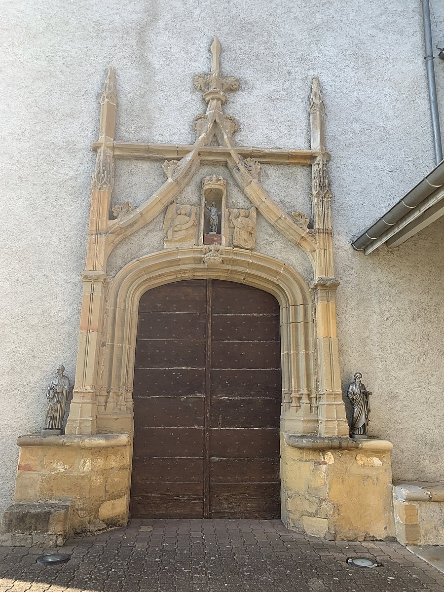 1527 la date présumée de la 1ère restauration (en gothique) coïncide avec la construction du portail, des chapelles latérales avec contreforts qui renforcent le chevet et lui donne la forme de croix latine. A l'origine elle était constituée uniquement du chevet, de la nef et d'un clocher sur lequel on voyait deux meurtrières (rebouchées en 1981).