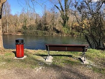 - Installation d'1 banc et d'1 poubelle au bord du gave, à Las Quindas