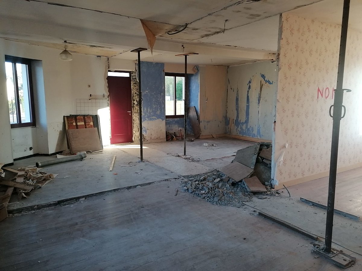 - Début travaux -agrandissement de la cour- avec l'achat de la maison Bédora