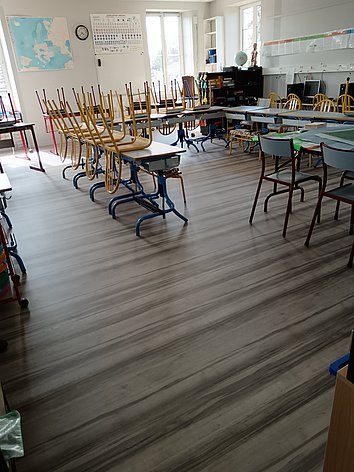 - Remplacements de chaises et de tables dans salle de classe à l'étage (dons)
