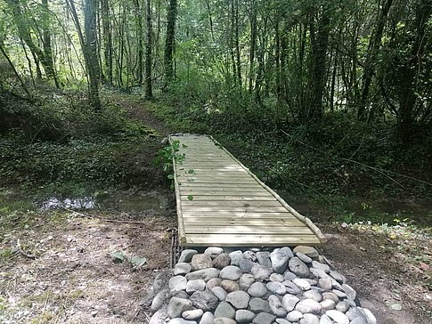 - Construction d’une passerelle en bois sur le sentier qui longe l’Ouzom et rejoint la voie de Baburet