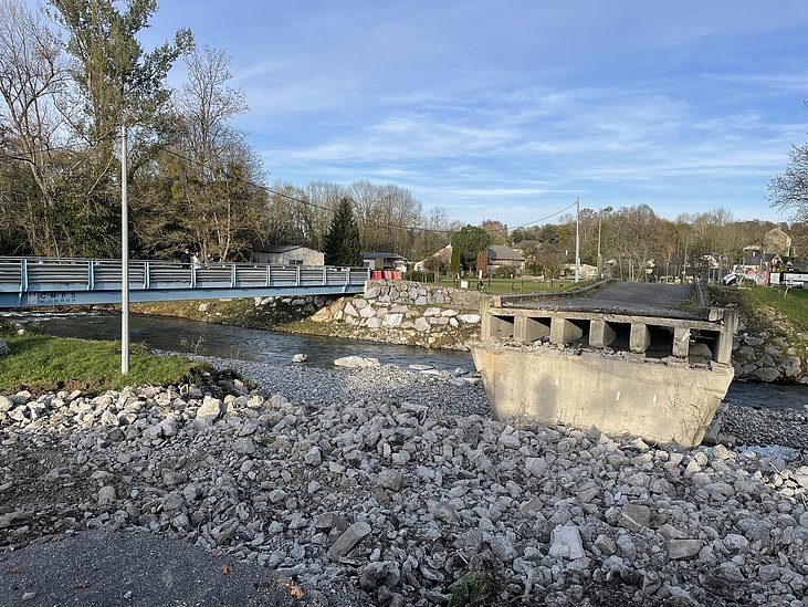 - Voirie refaite après destruction du pont de l'Ouzoum