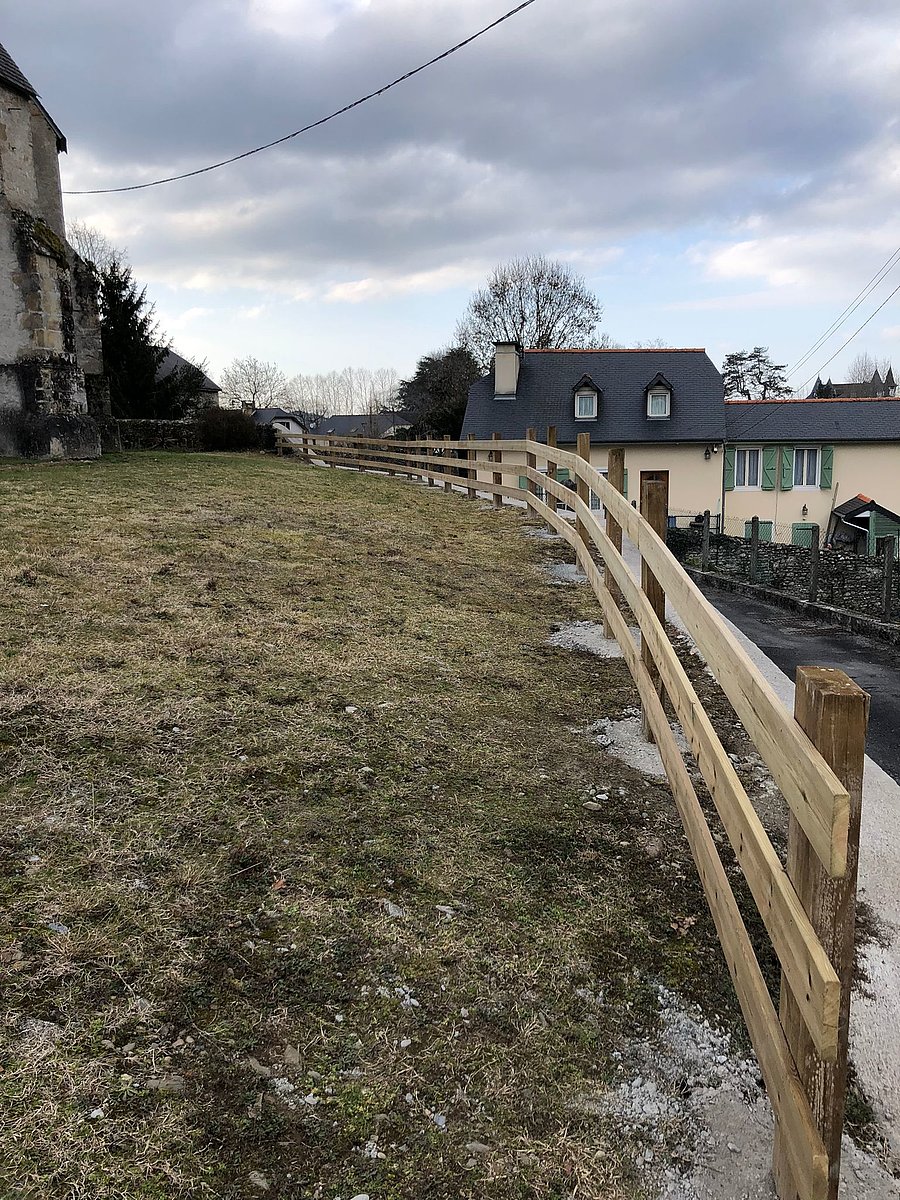 - Remplacement du grillage au parking du cimetière par une barrière en bois avec plantations